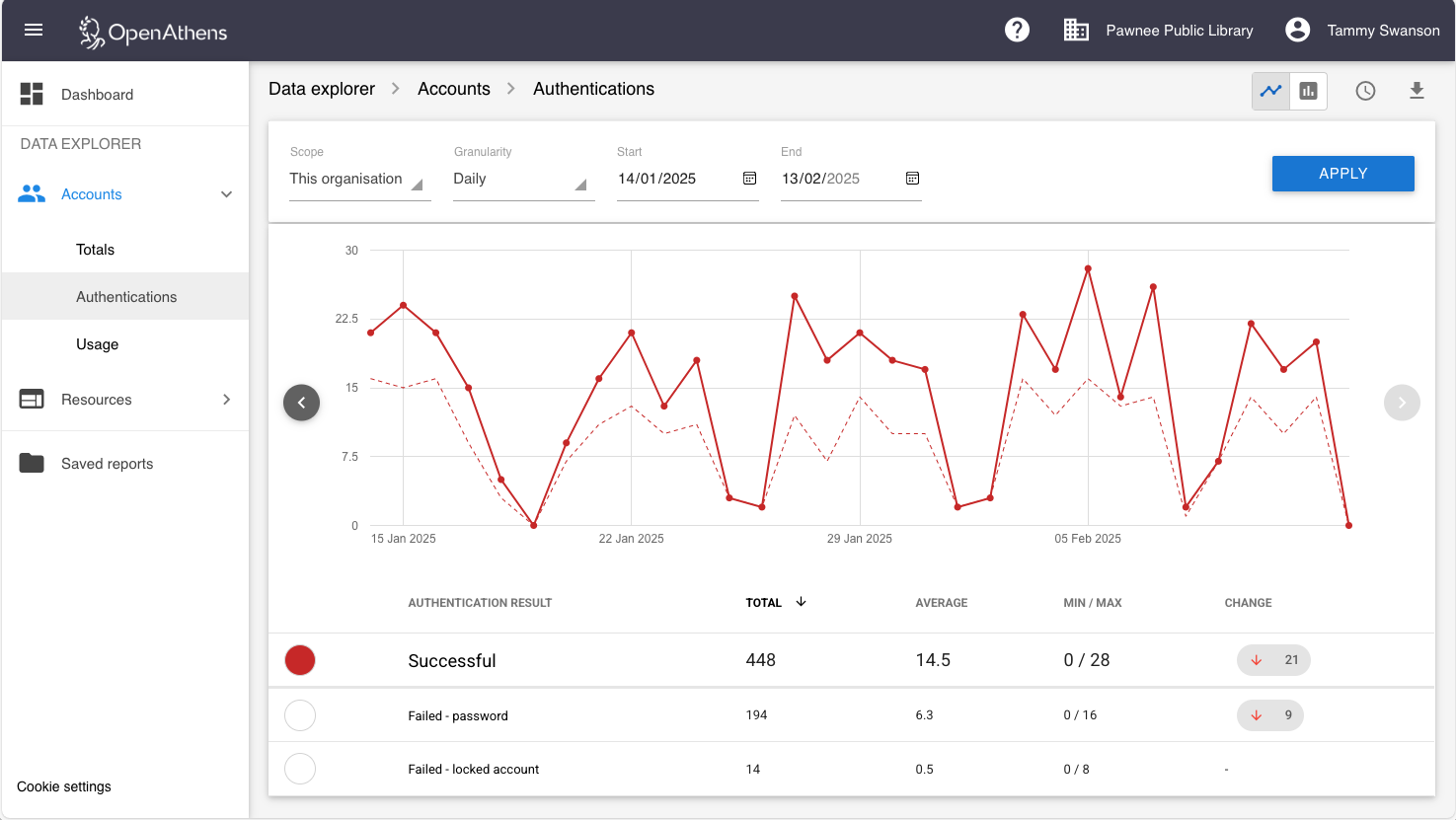 The account usage report is about the accounts that were successfully authenticated into OpenAthens.