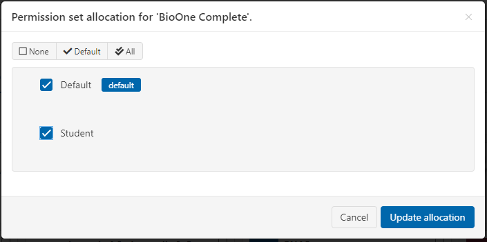 First off, you only need to be concerned about this function if you are either using restrictive mode or sending your users to MyAthens. If you are doing neither, then you do not need to allocate resources to permission sets.