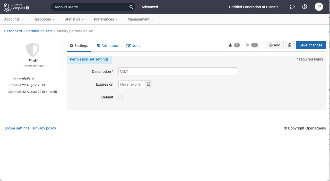 • With restrictive mode to limit which resources are available to sets of users. When used this way any changes you make to the resources allocated to a permission set instantly changes what the related accounts can access, although the users won't see it in MyAthens Plus lists until the next time they sign in.