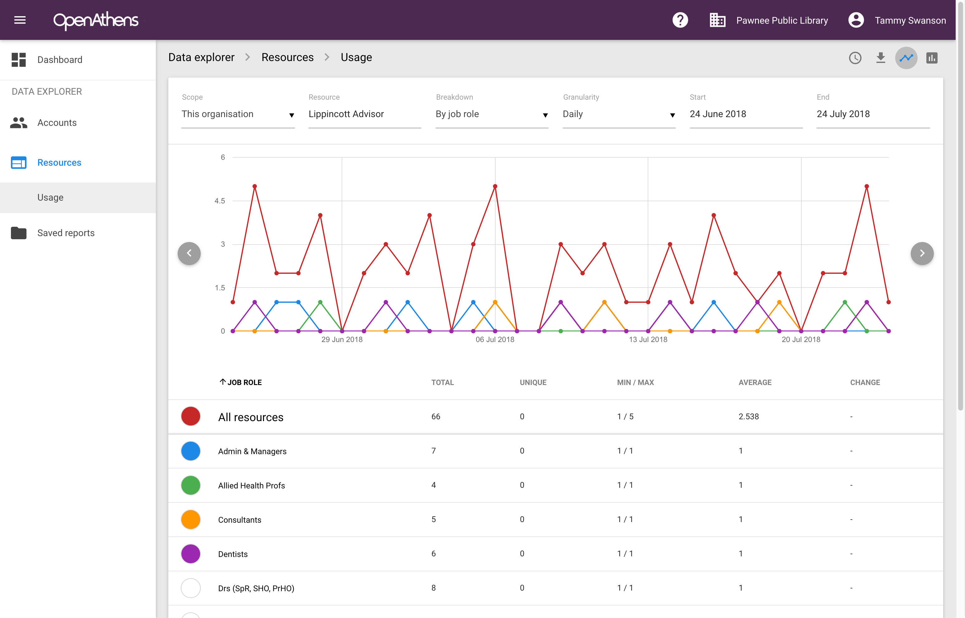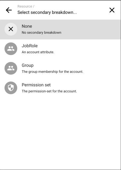 If you select resource as the breakdown, you will be presented with an option to select an additional breakdown - e.g. permission set, group or any reportable attribute. As this can make the interface a little crowded, downloading the report may be helpful.