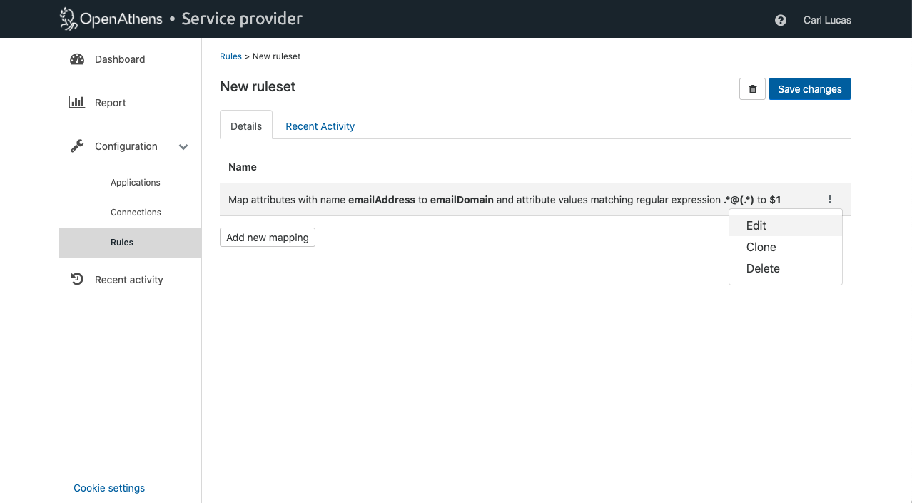 You can either add a new mapping, or edit, clone or delete an existing one via the dots menu next to each rule.